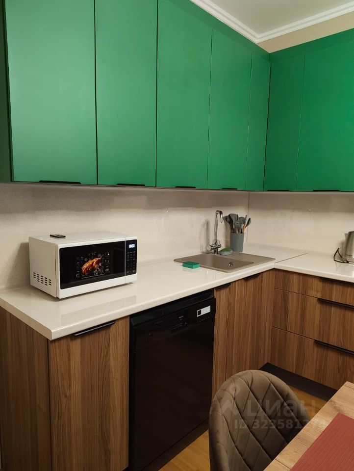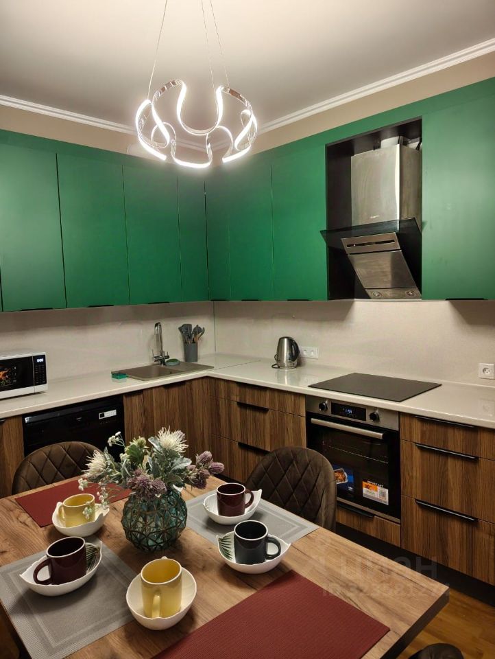2 Современная кухня с зелёными фасадами, новой техникой и уютной обеденной зоной
