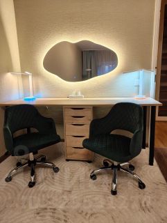 1 Стильная рабочая зона на двоих — идеально для удалёнки или учёбы (2 удобных кресла, подсветка, дизайнерское зеркало и настольные лампы). Большие удобные диваны.