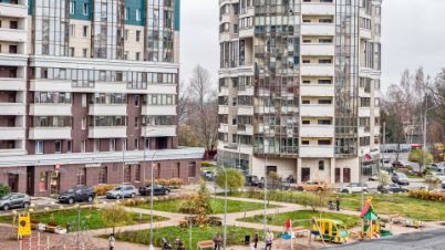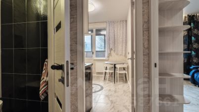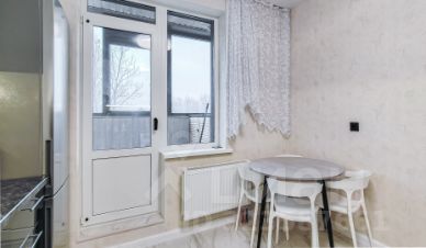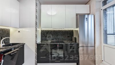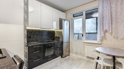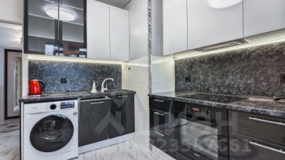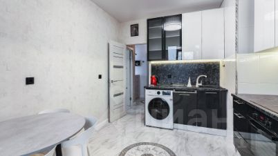 Кухня оборудована вместительным угловым гарнитуром с подсветкой рабочей зоны, встроенной техникой: варочной поверхностью, духовым шкафом, вытяжкой, посудомоечной машиной, а также полноразмерным холодильником и стиральной машиной. Круглый стол и набор стульев дополняют кухню. Выход на застеклённый балкон - из кухни, окнами квартира обращена во двор.