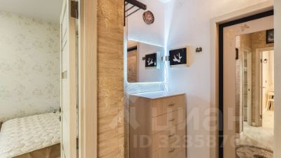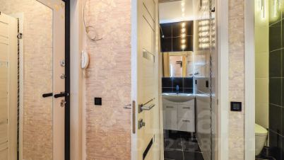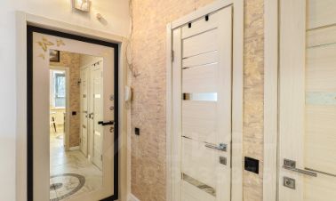 В коридоре установлен комод, зеркало с подсветкой, вешалка, а также большое зеркало во входной двери. По всей квартире покрытие пола - керамогранит.