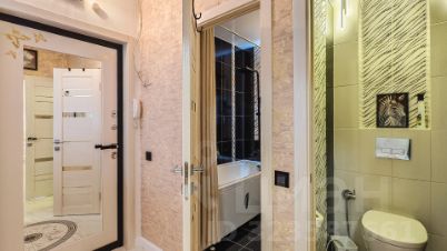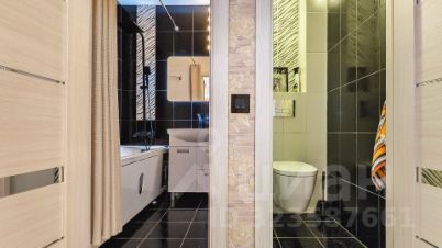 Санузел: раздельный, полноценная ванна, в кафеле, душевая система, зеркало с подсветкой.