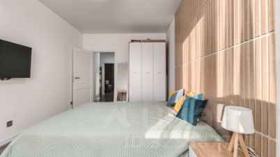 В коридоре установлена прихожая, обувница, видеодомофон, вместительный платяной шкаф с антресолью, а также большое зеркало напротив прихожей. По всей квартире покрытие пола - кварцвинил, только в санузле - кафельная плитка с подогревом пола.