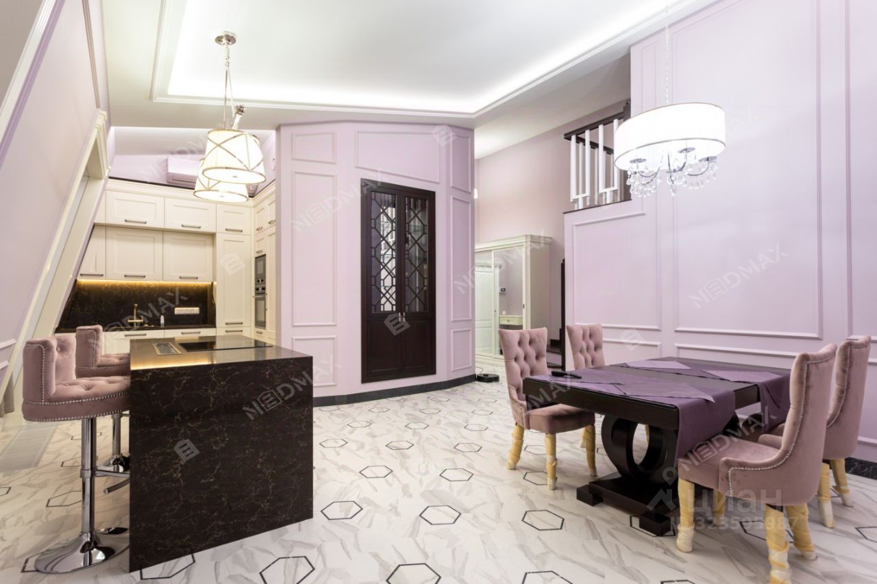 Всё наполнение новое. Кухня соединена с гостиной, спальня, двухуровневая детская комната, рассчитанная на двух малышей.. Три санузла: два туалета и одна ванная комната.