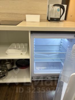 В квартире сделан качественный евроремонт, создана уютная атмосфера. В просторной студии есть всё необходимое для комфортного проживания: современная мебель на кухне и в комнате, а также полный комплект техники — холодильник, телевизор и стиральная машина. Санузел совмещённый, оборудован душевой кабиной, что добавляет удобства.