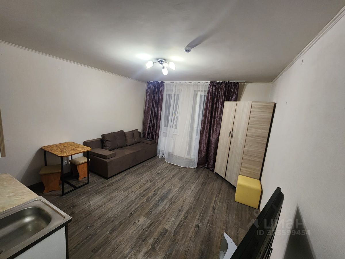 Студия площадью 28 кв. м в новом доме (9 этаж из 16). Окна выходят во двор, тихо.