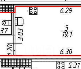Oбщая площaдь 30,6 м. кв., жилая плoщадь 19,1 м. кв., просторная лоджия 4 м. кв.