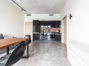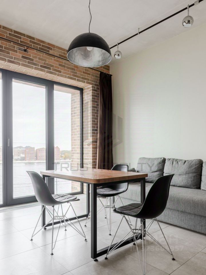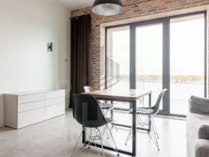 В квартире вас ждёт уютная жилая комната площадью 18 кв. м и просторная кухня на 22 кв. м, которая оснащена всем необходимым: кухонным гарнитуром, большим холодильником, посудомойкой и стиральной машиной. Для вашего комфорта предусмотрены большие панорамные окна от компании Reynaers Aluminium, из которых открывается живописный вид на реку Малая Нева и Финский залив. К тому же, есть возможность установить телевизор по договорённости, а также подключить интернет через Wi-Fi.