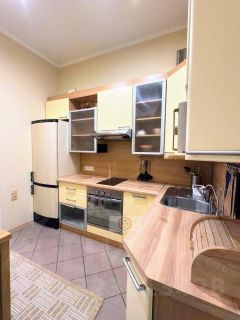 Имеется вся необходимая мебель и бытовая техника, в том числе посудомоечная машина, теплые полы. Установлен электрический бойлер.