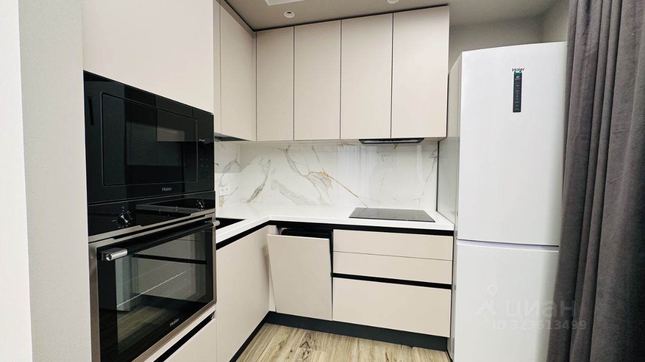 Кухонная зона включает : варочная панель, духовой шкаф, посудомоечная машина, микроволновая печь, холодильник.
