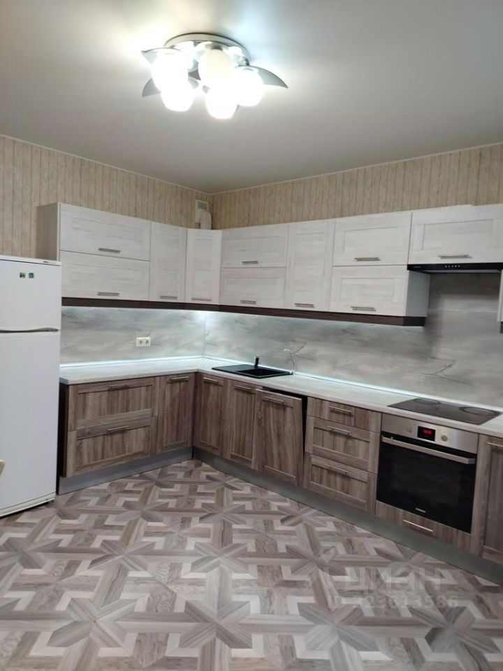 Кухня встроенная, с полным комплектом бытовой техники.