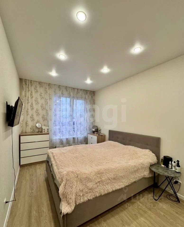 Комната с удобной кроватью, множеством мест для хранения одежды и вещей, телевизором. Подключен интернет.