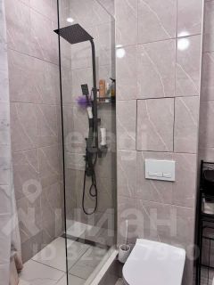 Совмещенный санузел с тропическим душем, зеркалом с подсветкой, стиральной машиной.