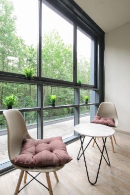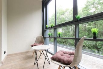 Окна: Выходят на зеленую зону, открывается вид на лес.