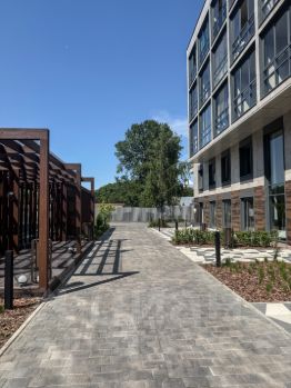 ЖК BEREG — это три низких корпуса (до 15 метров), органично вписанных в природу среди столетних деревьев. Комплекс расположен у живописного канала, напротив исторического парка Дубки и всего в 300 метрах от побережья Финского залива.