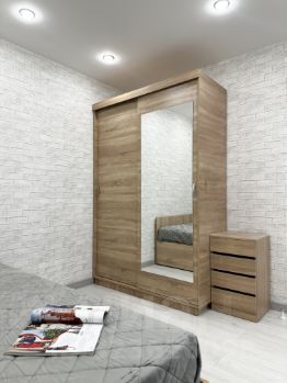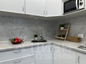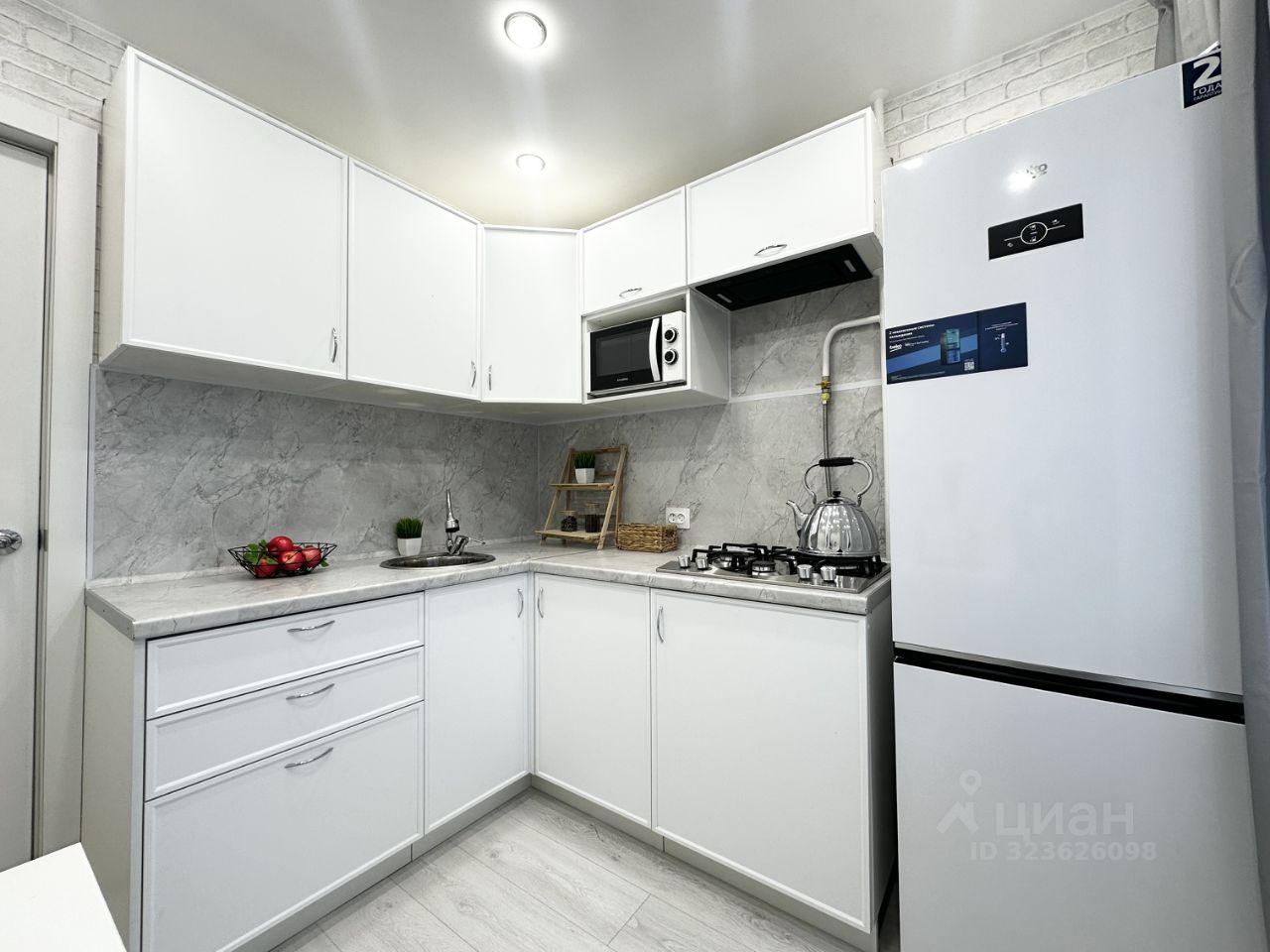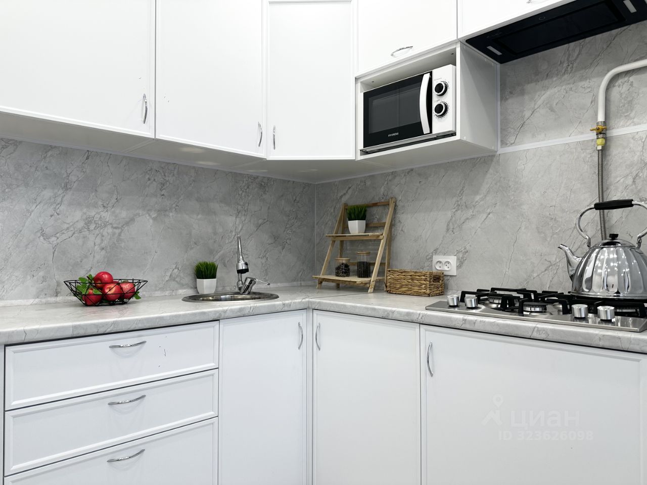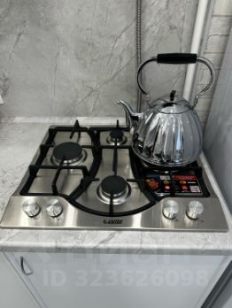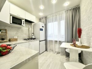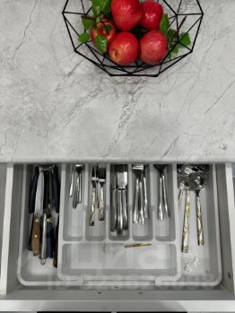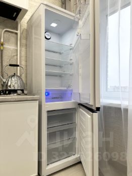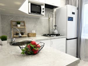 На кухне новая мебель, холодильник, газовая плита, микроволновая печь, вытяжка на пульте управления. Так же, для комфортного начала жизни в квартире есть и посуда.