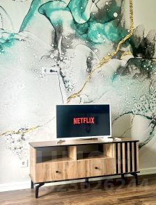 В квартире выполнен евроремонт, всё готово для комфортного проживания. Пространство обставлено необходимой мебелью, а также оснащено современной техникой: холодильником, телевизором и стиральной машиной. Планировка студии позволяет эффективно использовать пространство.