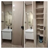 Техника: посудомоечная и стиральная машины, микроволновка, индукционная плита с духовым шкафом, холодильник, кондиционер. Дополнительно: фильтры очистки воды, кухонный измельчитель.