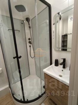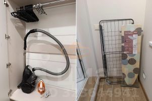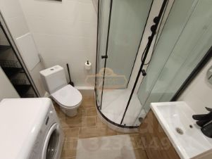 - в санузле - душевая кабина, тумба с 2 ящиками+раковина, зеркало с подсветкой, унитаз, стеллаж с полками, стиральная машина.