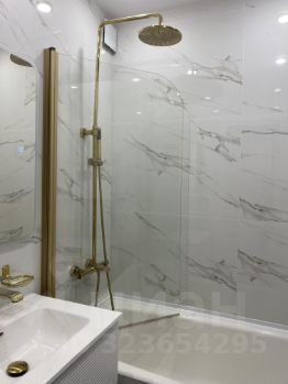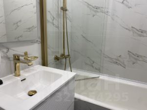 Полноценная ванна с душевой системой с терморегулятором, зеркало с подсветкой, стиральная машина с функцией сушки.