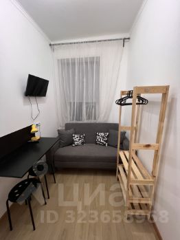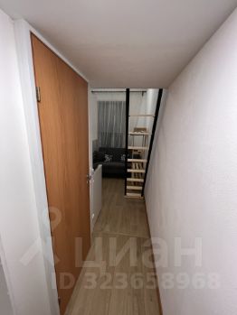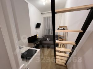 В студии есть всё для проживания. Внизу: зона отдыха, душ, туалет, кухня (микроволновка, чайник, холодильник, индукционная плита, стол, стулья). Второй ярус: двуспальная кровать. Сделан ремонт.