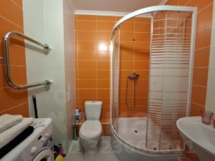 В квартире сделан качественный евроремонт. Просторная жилая зона площадью 18 кв. м объединена с кухней в 8 кв. м, что создаёт атмосферу открытого пространства. В наличии вся необходимая техника: холодильник, телевизор и стиральная машина. Кухня и комната обставлены мебелью. Совмещённый санузел оснащён современной душевой кабиной.