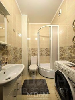 *Санузел совмещенный, при этом большой, нет ощущения тесноты. Установлена душевая и стиральная машинка.
