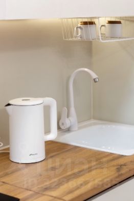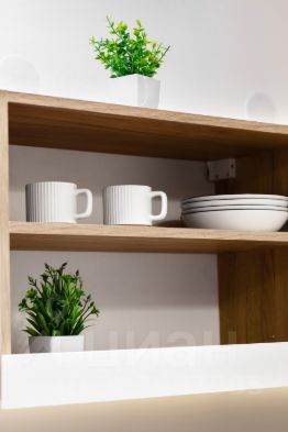 — Кухонный гарнитур, варочная панель, холодильник, чайник, микроволновка