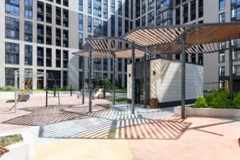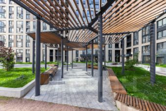Охраняемая придомовая территория, подземный паркинг, дизайнерский закрытый внутренний двор.