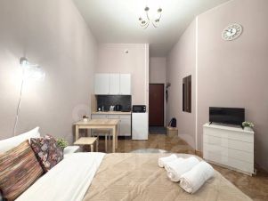 Бюджетная и уютная студия вместимостью до 2 человек. Удобная двуспальная кровать. Бесплатный Wi-Fi. Рядом с метро Чернышевская. Тихий двор. Идеальная чистота!