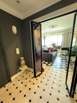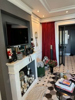 Роскошная отделка: Дизайнерский ремонт с материалами из Италии. Полы с подогревом во всей квартире. В гостиной — стильный кафельный паркет.