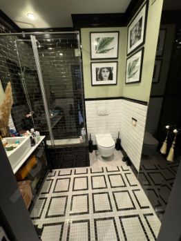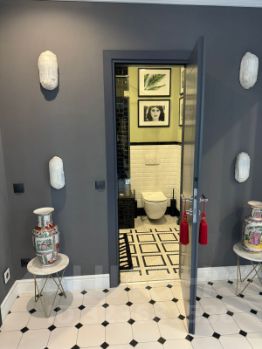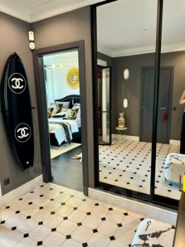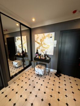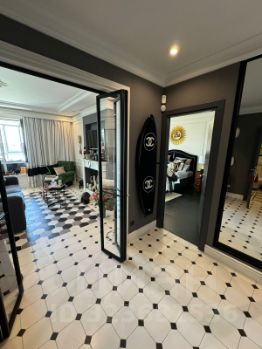 Особенности: Полы с подогревом, кафельный паркет в гостиной, зеркальная гардеробная.