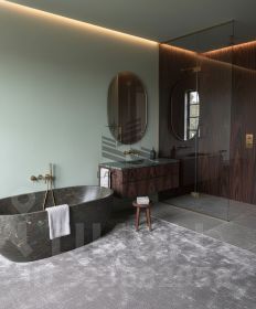 Просторная гостиная с высокими потолками и панорамными окнами наполнена естественным светом, подчеркивающим выразительные линии интерьера. Функциональная кухня-столовая оснащена высококачественной встроенной техникой и организована с учетом повседневного удобства. Уютные спальни с камерной атмосферой обеспечивают приватный отдых, а продуманная организация пространства демонстрирует заботу о качестве жизни.