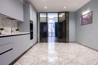 Квартира имеет две зоны с кухонными гарнитурами и 2 входа: парадный вход с лифтом ( с ул. Чайковского) и черная лестница со двора. Идеально подойдет для семьи со взрослым ребенком, няней или поваром т. к. фактически квартира может быть разделена на две со своей кухней, спальней, ванной и отдельным входом.