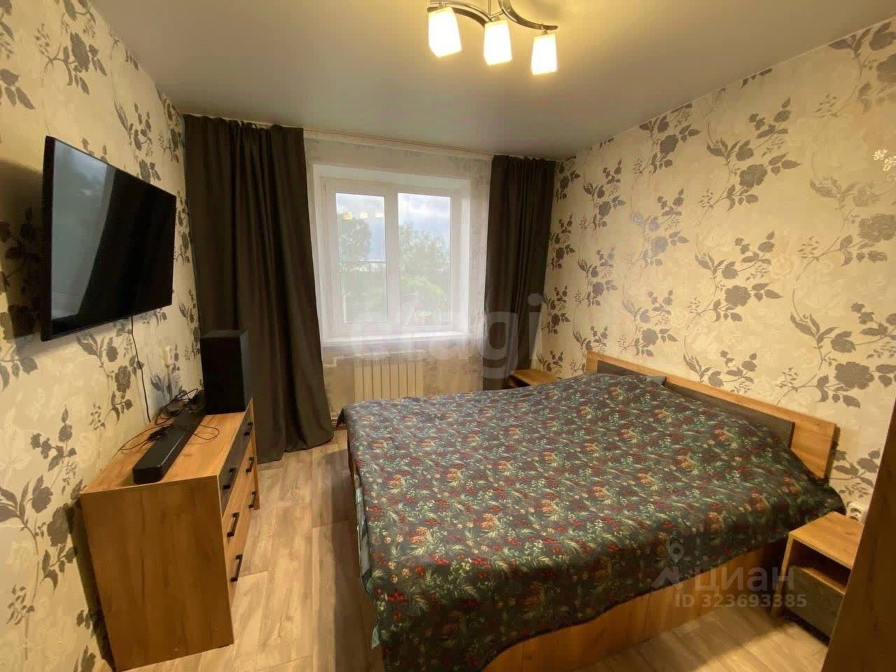 Двухкомнатная квартира площадью 52,7 м² расположена на четвертом этаже жилого дома в спокойном районе. Кухня 9 м² с современным гарнитуром, газовой плитой, холодильником, стиральной машиной и микроволновой печью. В квартире выполнен качественный ремонт: светлые стены, практичное напольное покрытие, раздельный санузел. Установлены стеклопакеты, обеспечивающие тишину и сохранение тепла, а балкон позволяет проветривать помещение. В жилых комнатах размещены двухспальная и односпальная кровати, вместительный шкаф, телевизор с тумбой. Вся мебель и техника в отличном состоянии.