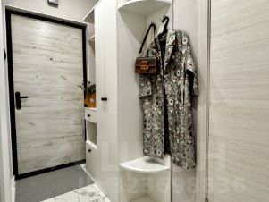 В прихожей современная мебель с закрытым шкафом для дополнительного хранения.