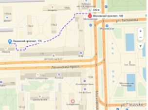 В пешей, всего 330 (!) м через двор от входа в метро Московская.