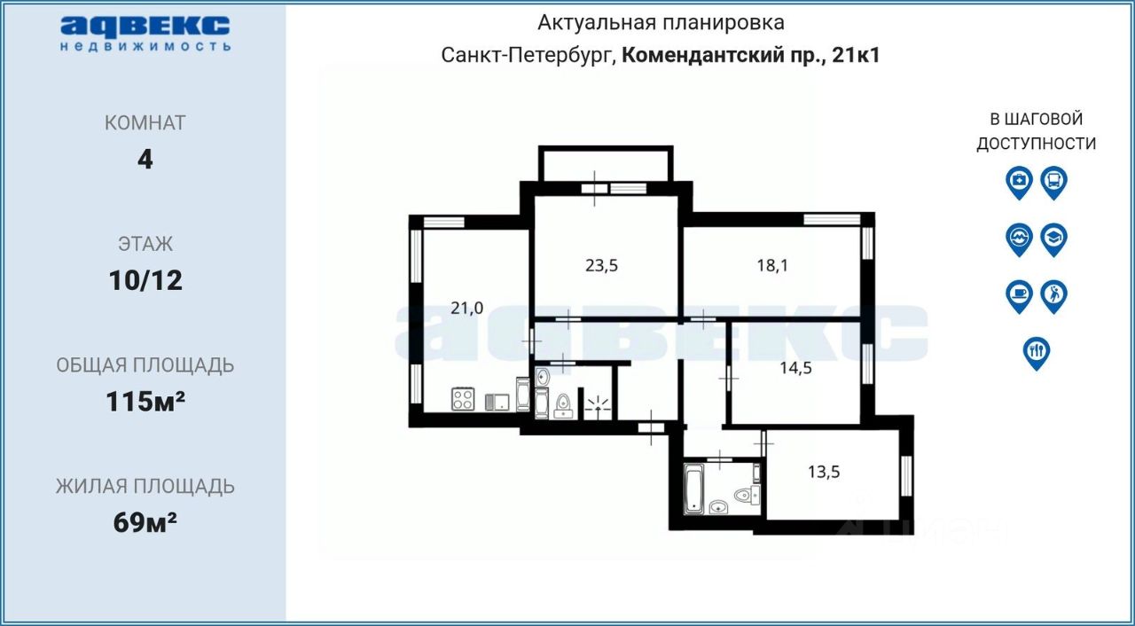 Всего 10 минут пешком до метро "Комендантский проспект".