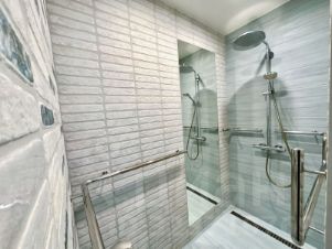 - Два раздельных санузла: В каждый установлен унитаз и раковина. Один оснащен душевой зоной, а второй ванной с перилами. Полы с подогревом.