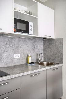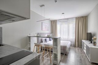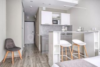 Сдается стильная студия с дизайнерским ремонтом в современном жилом комплексе. Апартаменты расположены на 11 этаже 22-этажного дома, всего в одной минуте пешком от станции метро Купчино. Общая площадь квартиры — 24,4 кв. м, что делает ее идеальной для комфортного проживания одного человека или молодой пары.