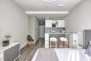 В студии выполнен качественный дизайнерский ремонт, который создает уютную и современную атмосферу. Здесь есть все необходимое для комфортного проживания: холодильник, телевизор и стиральная машина. Кухня и комната обставлены мебелью, поэтому можно сразу заехать и жить без необходимости дополнительных затрат. Ванная комната оборудована душевой кабиной, что удобно и практично.