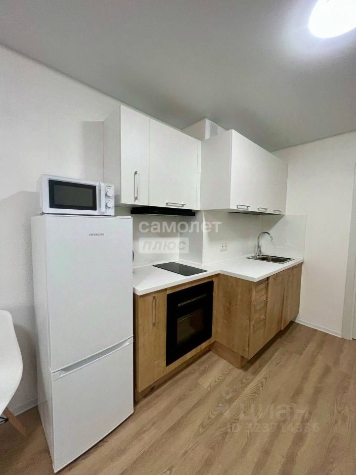 Кухня-гостиная: Новый кухонный гарнитур со встроенной техникой (варочная панель, духовой шкаф), холодильник, стиральная машина, микроволновка, вытяжка. Всё необходимое для готовки.
