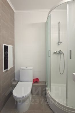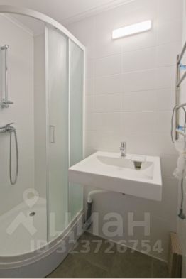 Студия предлагается без мебели, можно обустроить пространство по своему вкусу. В ванной установлена душевая кабина, есть возможность подключения к интернету.