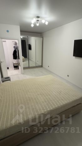 В комнате вместительный шкаф-купе и новая двуспальная кровать с ортопедическим матрасом.