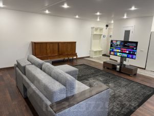 Грамотное зонирование пространства позволяет чувствовать уют и уединённость, а система дистанционного управления освещением с радиопультов добавляет комфорта. В ванной комнате предусмотрена мягкая ночная подсветка.
