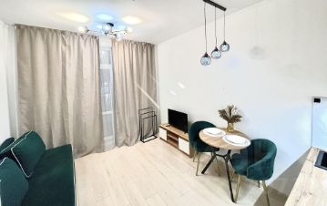 В студии выполнен евроремонт, что создаёт атмосферу уюта и современности. В квартире есть вся необходимая мебель как на кухне, так и в жилой зоне. Для вашего комфорта установлены большой холодильник, микроволновая печь, телевизор и стиральная машина. Ванная комната оборудована душевой кабиной.
