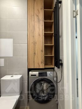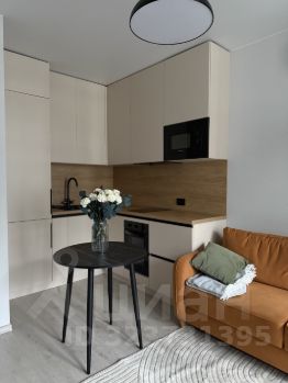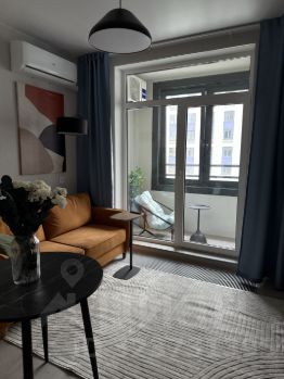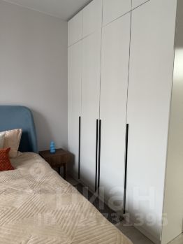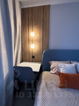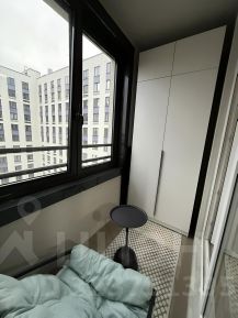 Квартира состоит из кухни-гостиной, спальни и лоджии. Маленькая, но полностью функциональная кухня с посудомойкой, выделенная гостиная зона, оборудованная лоджия с чил-зоной, гардеробная, уютная спальная комната с большой кроватью и выделенным рабочим местом с отдельным освещением.
