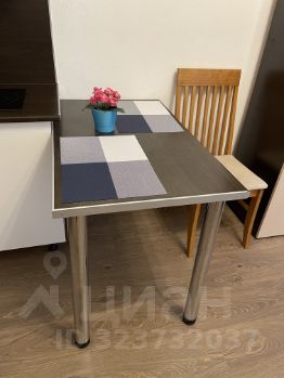 В квартире есть всё необходимое для комфортного проживания: современная мебель на кухне и в комнате, а также техника - холодильник, телевизор и стиральная машина. Санузел совмещённый, оборудован душевой кабиной. Небольшая, но функциональная кухня площадью 2 кв. м позволит вам удобно готовить ваши любимые блюда.