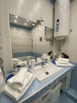 В ванной комнате большие и малые полотенца , гели для душа, шампунь, зубные щетки с пастой.