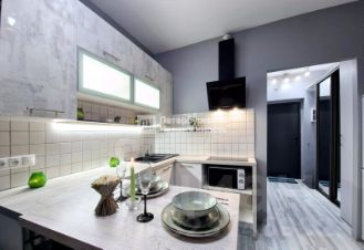 - Мебель: диван-кровать ( спальное место 145*200), шкаф-купе, кухонный гарнитур с барными стульями ;