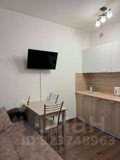 В квартире сделан современный евроремонт. Пространство студии организовано максимально функционально: есть вся необходимая мебель как на кухне, так и в комнате. Оснащена техникой: холодильник, телевизор и стиральная машина. В санузле установлена душевая кабина.